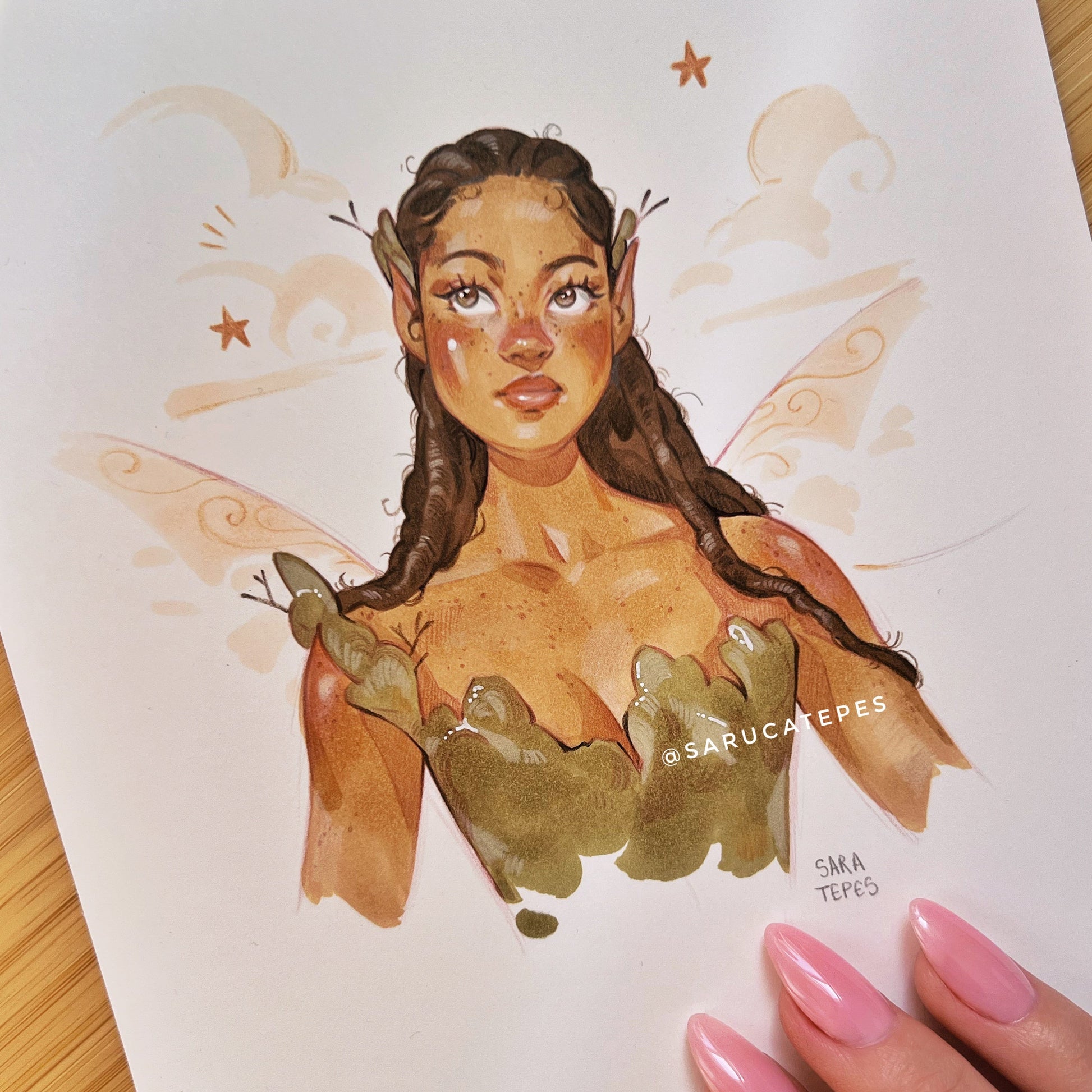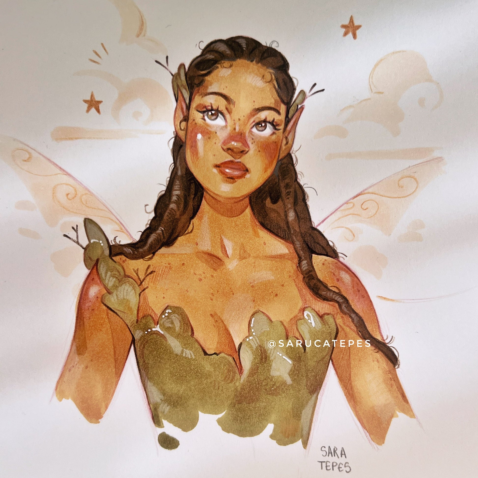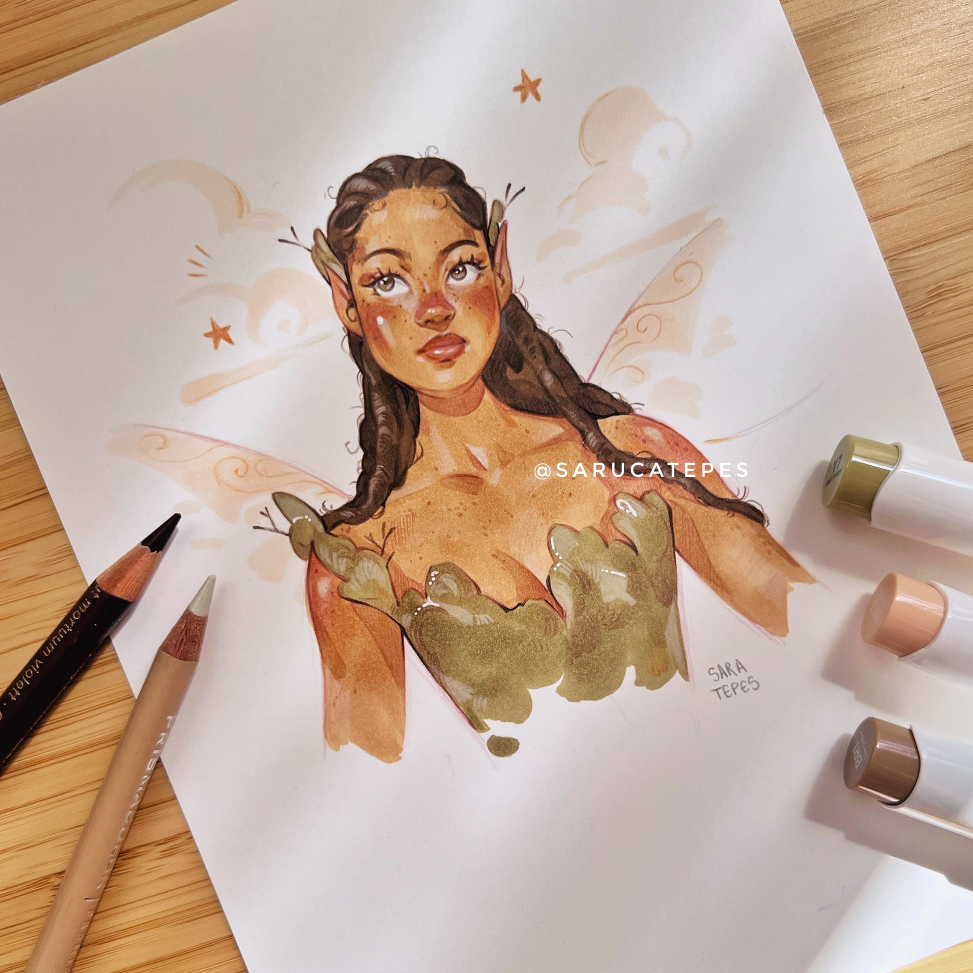 An original drawing with alcohol markers on smooth and thick acid-free paper for my Inktober prompt list, #sarucatober. This is day 3: Mossy ✨
